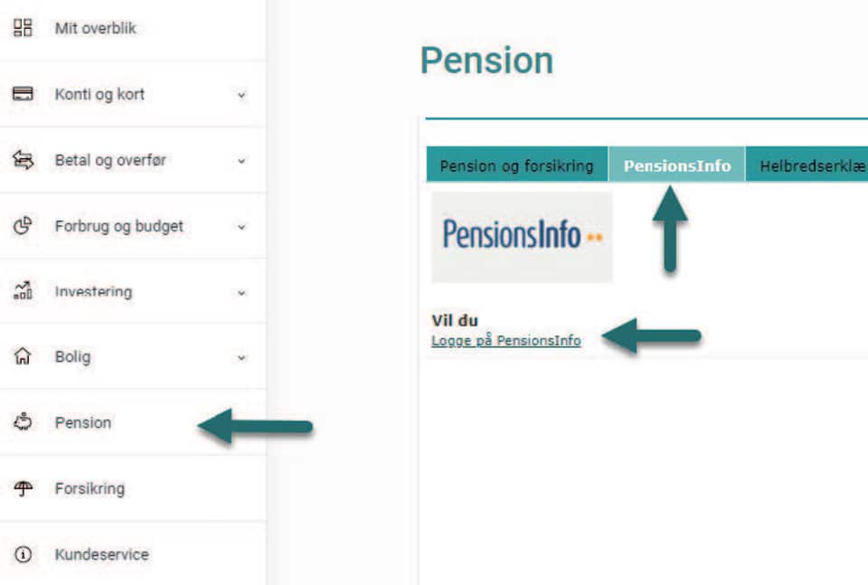 - Vælg ”pension” Vælg fanen ”pensionsinfo”